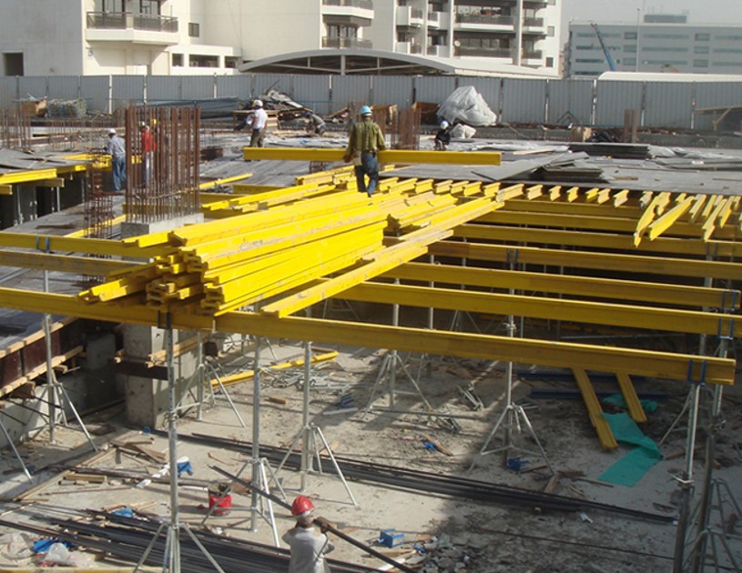 Slab formwork is widely used in the concrete pouring of slabs. Floor prop or scaffolding matches the supporting head is the supporting system. The main beam and secondary beam are timber beams, plywood is on the topside. The system is flexible, convenient in application and can be reused. In the concrete pouring of slab, supporting head series support slab formwork. Some of them can move early or rapidly. According to the demand, the combination of different heads is more cost-effective.